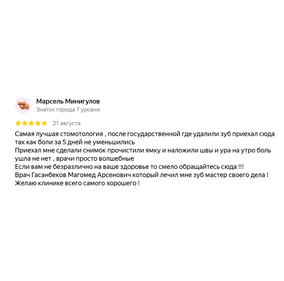 Убедитесь в качестве наших услуг, изучив отзывы наших пациентов, которые оставили свои комментарии после оказания услуги. 95% наших клиентов говорят о высоком качестве услуг и сервисе.